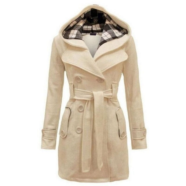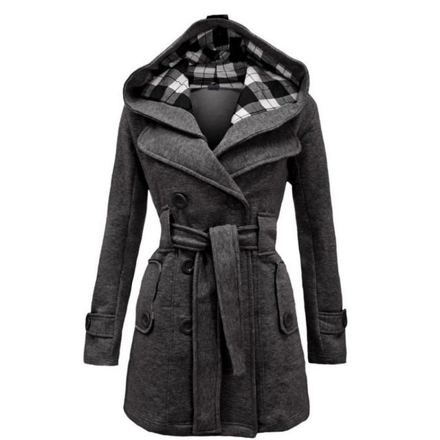 Winter Women Jacket New Casual Solid Color Hooded Coat Belt Double-breasted Dense Mid-long Thick Coat Long Jacket Women S-3XL