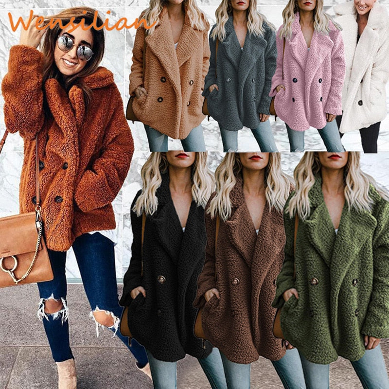 Teddy Faux Fur Coat Winter Jacket Women Plus Size Women's jacket Overcoat Lapel Outerwear With Fur Female Fourrure Femme Futro